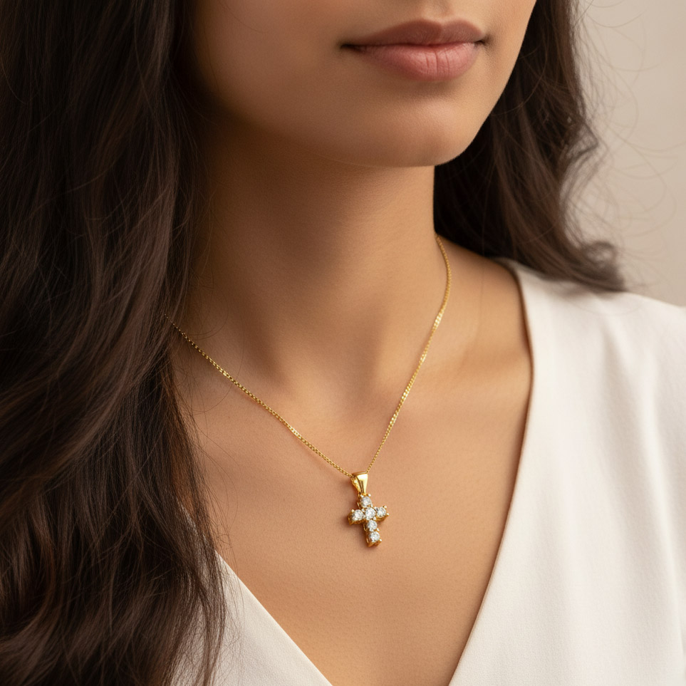 Precioso colgante de Cruz de brillantes zirconitas que proporcionan una luz especial.